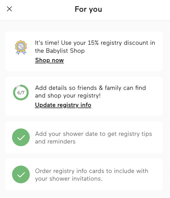Hot tip: Poke around in all the areas—there are all kinds of other things you can update and learn about, including the Hello Baby Box!